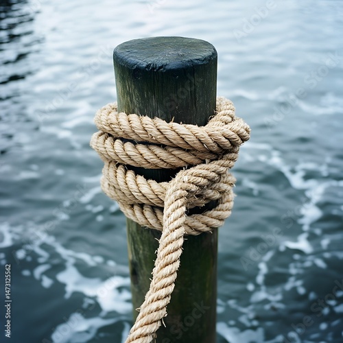 mooring, post, rope, tied, knot, water, sea, dock, pier, nautical, wooden, support, secure, calm, wave, nature, detail, closeup, texture, brown, natural, detail, structure, fishing, strong, hard-wearing, fastened, bound, connection, ocean, element, calmness, stability, protection, binding, fastening, vessel, boat, anchored, seaport, maritime, harbor, tide, foam