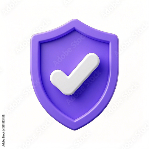 Security Shield Icon - Purple 3D Design Verification Symbol Isolated Transparent White Background Stock Object Download