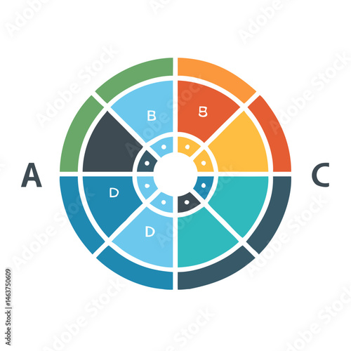 chart, circle, segmented, infographic, breakdown, datum, visualisation, statistic, graph, segment, pie, icon, info, circular, presentation, visual, diagram, report, analysis, dashboard, percentage, design, layout, business, slice, division, abstract, metric, structured, radial, digital, overview, information