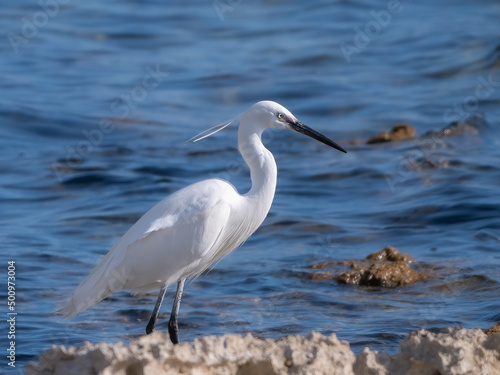 Seidenreiher (Egretta garzetta) am Strand