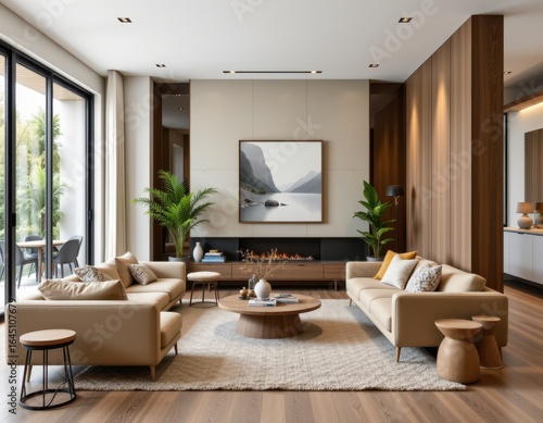 selecting, decor, modern, style, choosing, furniture, accessory, smooth, surface, neutral, colours, organic, texture, complement, open, plan, layout, ai, generative