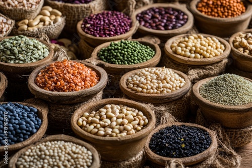 Selection of healthy rich fiber sources vegan food for cooking, ai
