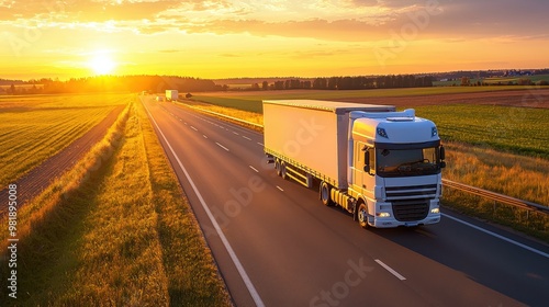 Semi Truck Driving on Highway at Sunset