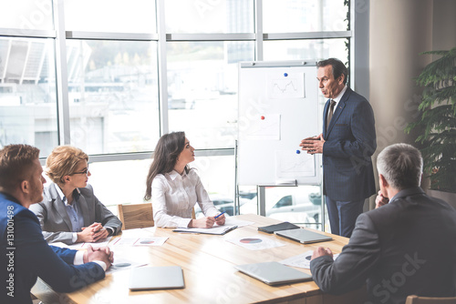 senior boss is talking to workers