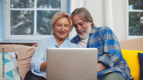 senior, couple, relaxing, laptop, together, sitting, sofa, living, room, home, portrait, aged, man, woman, shopping, online, computer, resting, couch, indoor, mature, caucasian, happy, retirement, domestic, casual attire, connection, female, smiling, old, relaxation, cheerful, comfortable, family, wireless, lifestyle, technology, leisure, human relationships, retired, happiness, relaxed, house, elderly, love, male, cyberspace, adult, affection, person