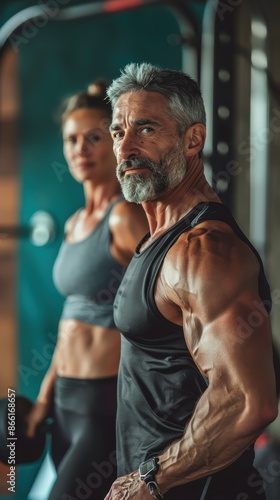 senior, man, woman, gym, exercise, physical exercise, muscular, bodybuilder, fitness, muscle, strength, training, weight, dumbbell, health, active, lifestyle, healthy, athletic, fit, strong, motivation, inspiration, ageing, mature, determination, sharpened, perspiring, effort, perseverance, power, energy, endurance, achievement, goal, progress, result, success, commitment, dedication