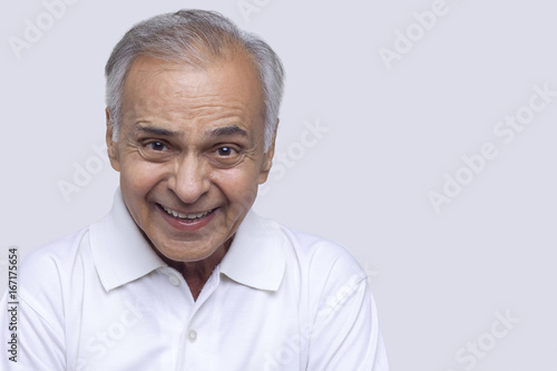 Senior man smiling over white background