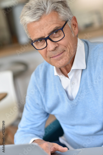 Senior man using laptop computer