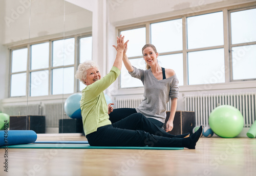 achievement, active, adult, body, care, caucasian, celebration, club, coach, conscious, elder, exercise, exercising, female, fit, fitness, 5, fun, gym, hand, happy, health, healthy, high, instructor, looking, mature, people, personal, physical, preparing, recovery, rehab, retirement, senior, sitting, smile, smiling, studio, success, teamwork, together, trainer, training, 2, woman, woman, physical exercise