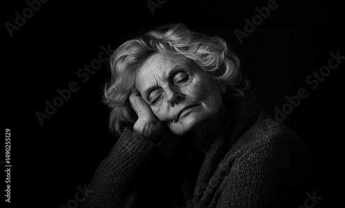 Senior woman looking exhausted with her head resting on her hand, reflecting a moment of fatigue. Generated image