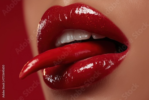 red lips, chili pepper, sensual, closeup, glossy, lip, spicey, spice, beauty treatment, red fruit, food photography, lipstick, beauty, make-up, bold, tempting, cosmetic, aesthetic, alluring, provocative, expressive, inviting, flavorful, delicious, enticing, mouth, texture, detail, close, vibrant, dynamic, taste, edible, hot, smooth