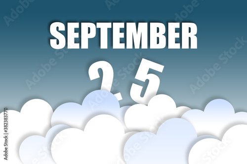 september 25th. Day 25 of month,Month name and date floating in the air on beautiful blue sky background with fluffy clouds. autumn month, day of the year concept