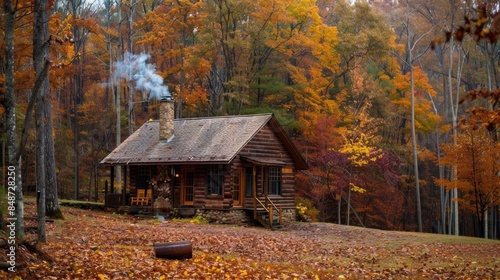 Serene Autumn Retreat: Cozy Cabin in Fall Woods with Colorful Foliage