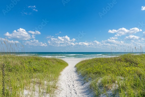 Serene Beach Path Leading to the Ocean; A Perfect Summer Day