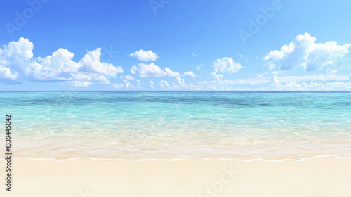 beach, ocean, water, sky, cloud, sand, tropical, nature, landscape, horizon, summer, vacation, calmness, seascape, coastline, paradise, sunny, clear, blue, wave, relaxation, scenic, beauty, peaceful, shore, marin, environment, sunlight, idylli, travel, calm, escape, warm, coastal, natural, serene, bright, picturesque, scenery, sandy, day, view, tranquil