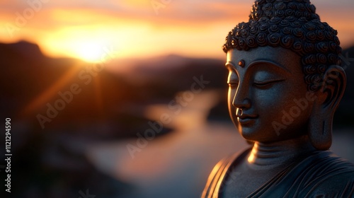 Serene Buddha Statue at Sunset: A Peaceful Moment of Meditation