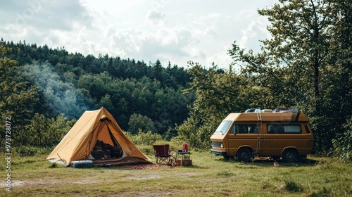 Serene camping scene in the peaceful forest adventure