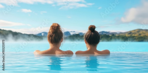 Serene couple relaxing in the tranquil Blue Lagoon spa, surrounded by nature's beauty in an outdoor oasis.