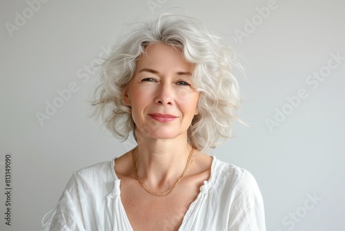 woman, serene, white hair, light background, portrait, elegance, grace, peace, calm, beauty, mature, senior, refinement, wisdom, content, feminine, necklace, simplicity, tranquil, lifestyle, composure, minimalistic, pure, gentle, ageing, wellness, poise, charme, charisma, natural, head shot, sophisticated, stylish, sophistication, minimal, confidence, relaxed