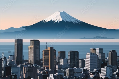 Serene Fusion of Mount Fuji and Tokyo in Minimalist Artwork Creation
