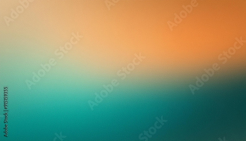 Serene Gradient Horizon. Tranquil Blend of Cool Teal Fading into Warm Sunset Orange, Textured Abstract Backdrop Banner with Copy Space