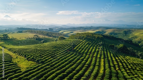 Serene Green Hills of Brazils Tea Plantation at Dawn