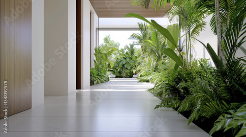indoor, garden, greenery, modern, architecture, plant, serene, tranquil, natural, light, interior, design, space, contemporary, tropical, foliage, pathway, home, relaxation, aesthetic, bright, open, environment, landscaping, decor, peaceful, vibrant, stylish, sustainable, living, nature, fresh, elegant, roomy, inviting, harmony, wellness, minimalistic, clean, organic, beauty, luxury, sunlight, residential, lush, botanical, zen, atmosphere, calmness