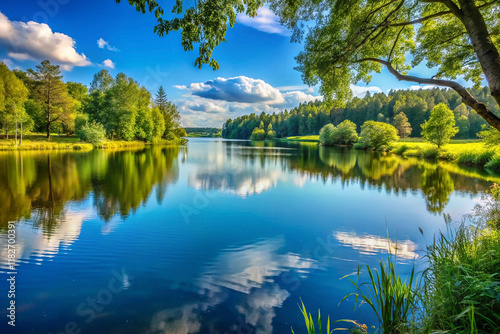 lake, nature, sky, cloud, tree, green, water, summer, landscape, calm, peaceful, scenic, tranquil, beauty, serenity, outdoors, environment, park, duck pond, river, forest, wood, blue, sunlight, sunshine, day, bright, vibrant, idylli, majestic, picturesque, serene, relaxing, horizon, view, scene, background, image, photo, picture