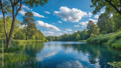 background, sky, summer, nature, landscape, green, blue, beautiful, lake, duck pond, view