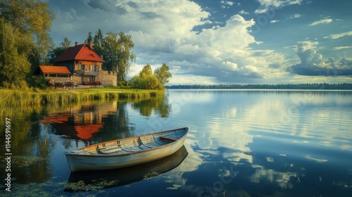 Serene Lakeside House with a Boat