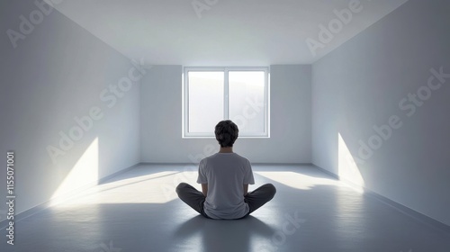 person, meditation, minimalist, room, soft, light, white, background, calm, space, calmness, yoga, posture, solitude, sharpened, mindfulness, relaxation, inner, peace, stillness, wellness, clear, bright, silence, harmony, balance, health, energy, zen, awareness, lifestyle, simplicity, design, modern, zenith, artistic, peaceful, empty, outlook, clarity, floor, window, nature, escape, view, sunlight