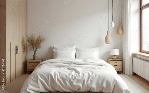Serene Minimalist Decluttering in Zen-Inspired Bedroom, Perfect for Earth Day and New Year. High quality