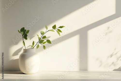 Serene Minimalist Still Life Sunlight, Greenery, and Simple Elegance
