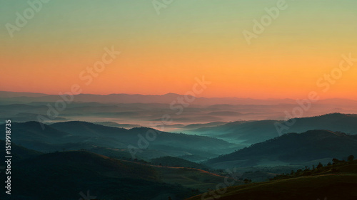 sunrise, misty, rolling hills, landscape, tranquil, serene, orange, blue, calm, peaceful, morning, dawn, nature, scenic, horizon, layer, countryside, panoramic, atmospheric, soft light, beauty, outdoors, vista, idylli, rural, early morning, sky, gradient, natural beauty, wilderness, untouched, fresh air, quiet, solitude, relaxation, picturesque, breathtaking, gentle, earth-tone, environment, mist, calmness, scenic view