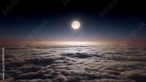 Serene Moonlit Night Over a Sea of Clouds with a Starry Sky in the Background
