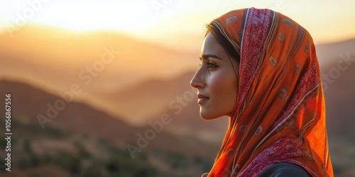 moroccan, woman, gaze, mountain, sunset, landscape, admiration, serenity, beauty, nature, culture, profile, foulard, dusk, calmness, exploration, adventure, harmony, stillness, solitude, inspiration, emotion, contemplation, outdoors, vista, elevation, peak, horizon, charme, warmth, light, shadow, daydream, expression, heritage, environment, travel, journey, majestic, picturesque, silhouette, colours, essence, freedom, connection, spirituality, identity