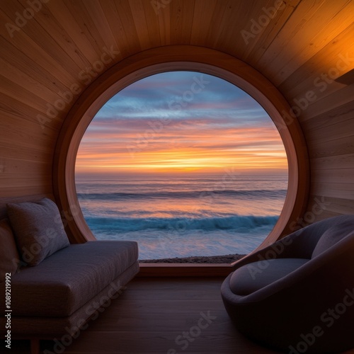 ocean, sunset, window, interior, design, relaxation, nature, scenery, peaceful, beach, modern, architecture, landscape, cosy, view, horizon, wood, light, calm, serenity