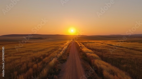 rural, landscape, dirt, road, sunset, horizon, field, gold, sky, nature, calmness, scenic, pathway, sun, dawn, evening, exploration, travel, agriculture, flora, environment, countryside, warmth, beauty, solitude, peaceful, sunlight, natural, west, summer, calm, adventure, distant, view, photo, serene, shadow, terrain, unpaved, remote, open, expansive, scenic route