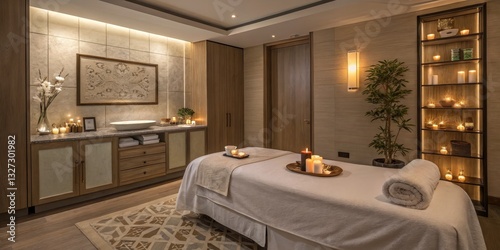 Serene Spa Room Candles, Massage Table and Soft Lighting, Wellness, Relaxation