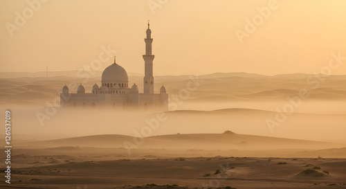 mosque, desert, sunrise, gold, light, peaceful, atmosphere, arabian, architecture, breathtaking, view, majestic, religion, landscape, tranquil, scene, mystical, foggy, morning, oasis, scenic, beauty, calm, ambience, sand, dune, hill, spiritual, islam, faith, travel, emirate, emirate, culture, serenity, stillness, dawn, photo, image, picture, white, structure