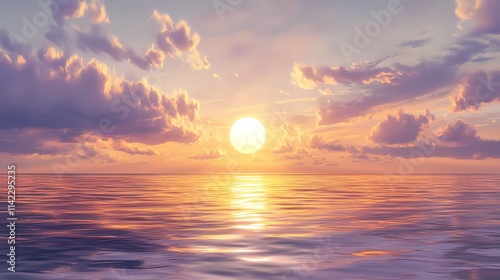 Serene Sunset Over Calm Ocean Water with Colorful Sky and Reflective Surface Showcasing Nature's Beauty at Dusk
