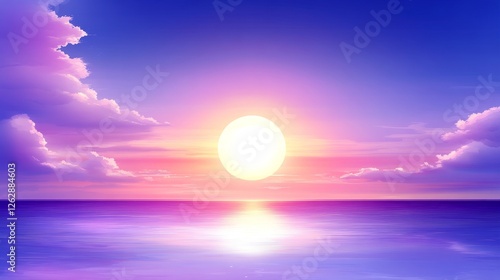 Serene sunset over calm ocean waters with vibrant color reflecting on the surface, evoking tranquility