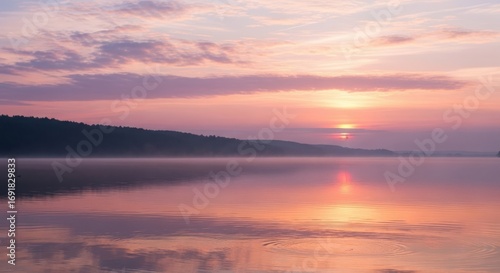 Serene sunset reflection over calm water landscape scenery