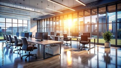 Serene Symphony of Light and Shadow: A Blurred Vision of a Modern Office Generative AI