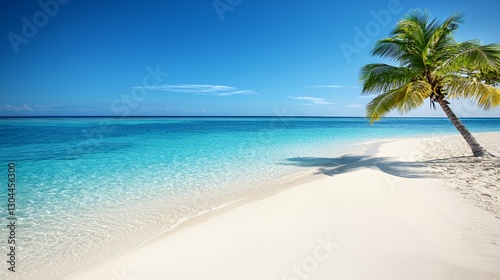 Serene Tropical Beach Scene with Palm Tree and Azure Water