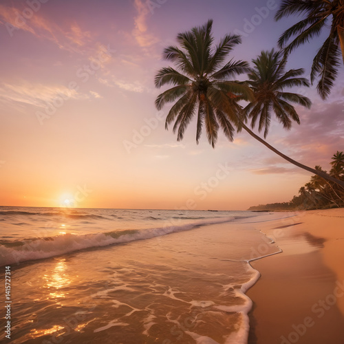beach, sunset, palm tree, tropical, ocean, wave, sand, golden hour, serene, summer, paradise, vacation, travel, holiday, coastline, tranquil, nature, landscape, exotic, seascape, sky, water, relaxation, calm, peaceful, beautiful, picturesque, tropical beach, sunset beach, evening, dusk, coastal, shore, sea, caribbean, ocean view