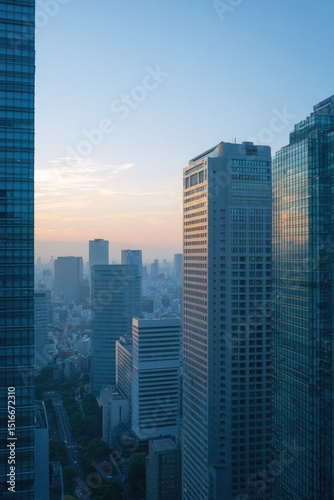 serene, urban, skyline, captured, high, vantage, point, dawn, bathe, soft, morning, light, minimalistic, city landscape, tower block, building, open, sky, suitable, background, advertisement, ample, copy space, text, logotype, clean, image, calmness, architectural, elegance, unique, high-quality, sharpened, style, texture, abstract, modern, concept, background