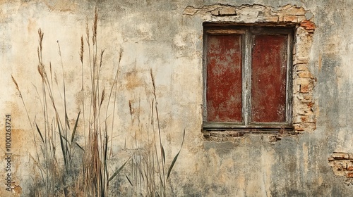 "Serene View: Reeds Sway Against a Textured Wall and Window Backdrop"