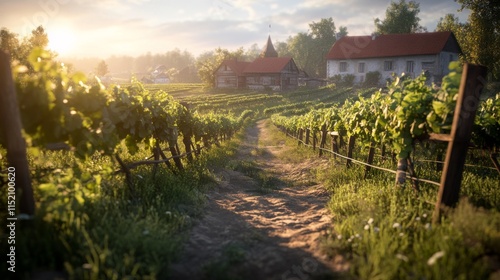 Serene Vineyard Pathway at Morning Light