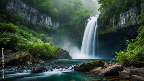 waterfall, forest, nature, landscape, scenery, water, river, rock, tree, green, lush, foliage, fern, moss, beautiful, peaceful, tranquil, serene, hiking, camping, exploration, scenic, idylli